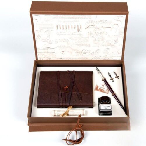 A tribute to the art of handwriting, the Medioevalis Leather Journal & Writing Set is a timeless companion for those who appreciate slow, meaningful expression. This handcrafted set includes a brown leather wrap journal (12 x 16cm) with long lace closure, made from 100% genuine leather.